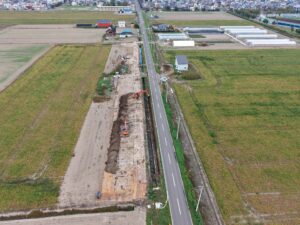 暗渠排水掘削機「トレンチャー」による農業用地の暗渠排水工事や農業生産性向上に向けた区画整理工事、農業用排水路工事等の農業土木工事の施工を行っています。