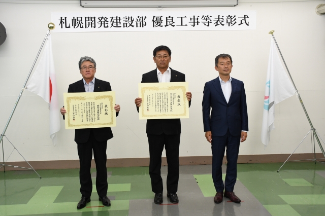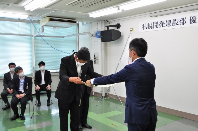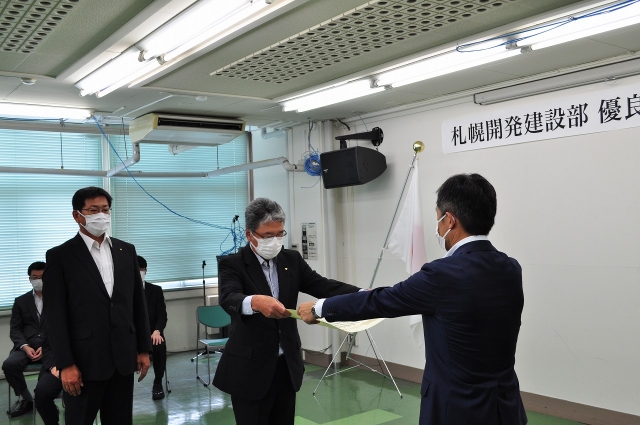 2022年7月28日 札幌開建優良工事表彰 お知らせ 令和4年度北海道開発局札幌開発建設部優良工事等表彰が令和4年7月28日(木)に行われ、 札幌開発建設部 部長表彰を受賞しました。 【表彰工事名】 南長沼地区 28工区区画整理工事 今後も、世のため・人のため、確かな技術をもって、豊かで安全な地域社会の構築に貢献 し続けるべく、技術者の育成、技術の向上に努める所存でございます。 社員研修会 安全大会