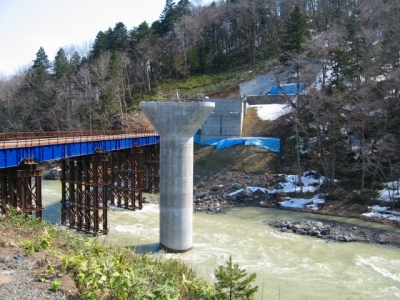2007年5月25日 占冠橋(下部工) 道路工事 平成17年度から19年度施工 占冠村 工事名 北海道横断自動車道 占冠橋(下部工)工事 発注者 日本道路公団 北海道支社 千歳管理事務所 工 期 平成17年06月20日 から 平成19年05月25日 内 容 橋台 2基 橋脚1基 仮橋1基 占冠村で、北海道横断自動車道の下部工事を行いました。 厳しい条件の中、当初工期を約200日残して完成に至りました。 鳩が丘上志文線 岩見沢跨線橋下部解体